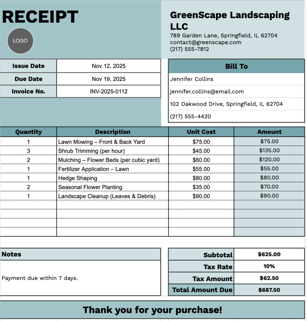 Looking for a professional landscape receipt template without the hassle of creating one yourself?