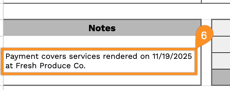 - Additional notes area and professional closing: Includes a dedicated notes field above the totals section for payment terms, special instructions, or service details, plus a courteous “Thank you for the payment!” message to maintain professional client relationships.
