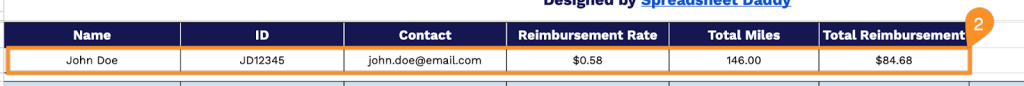 2. Start by entering the driver’s name, ID, and contact information, along with the applicable mileage reimbursement rate. As you log trips, the template automatically calculates total miles driven and the total reimbursement amount.
