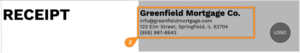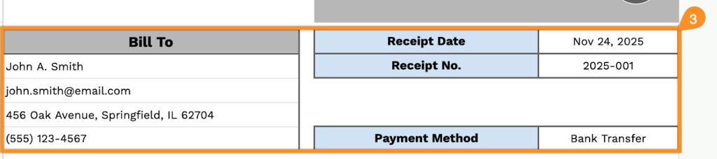 3. Complete the “Bill To” section with the borrower’s details, along with the receipt date, receipt number, and payment method.