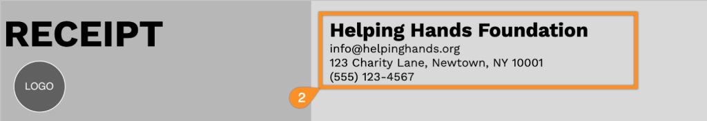 2. Add your nonprofit’s name, email, address, phone number, and logo at the top of the receipt.
