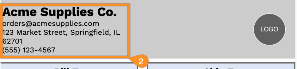 3. Enter the Bill To and Ship To information, along with the order number, order date, and purchase order reference.