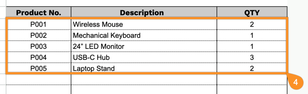 - Product itemization table: A structured table with Product Description and QTY (Quantity) columns lets you list multiple items in a single shipment, providing clear visibility of what’s being sent and how many units of each product are included.