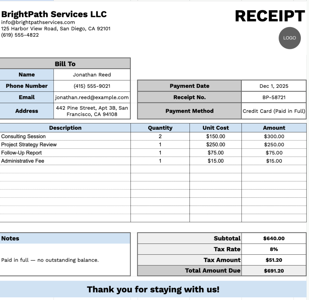 Select a link below to download a blank paid-in-full receipt template in the format that works best for you: