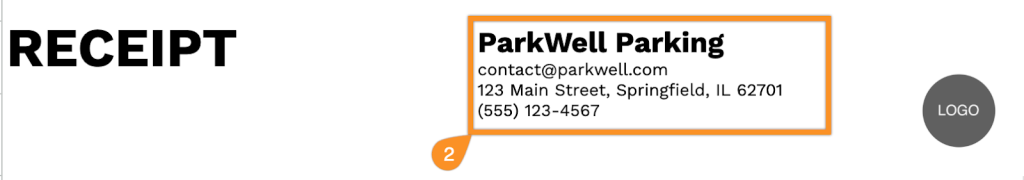 • Customizable business information fields: The header section includes editable placeholders for company name, email address, physical address, and phone number, allowing you to quickly brand the receipt with your parking facility or business details for professional documentation.