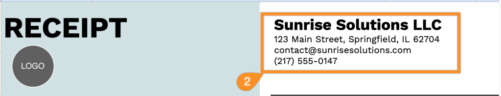 2. Enter your company details at the top, including your name, email, address, phone number, and logo.
