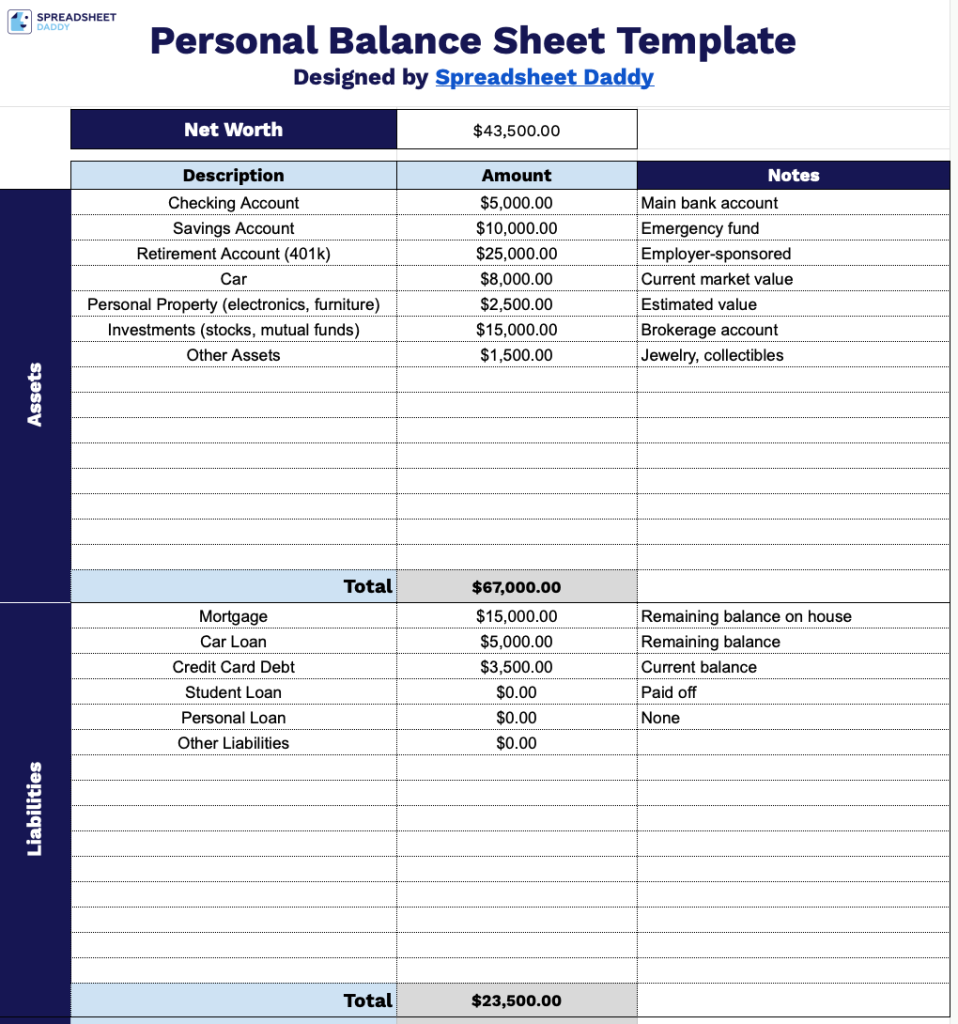 Download Spreadsheet Daddy’s Free Personal Balance Sheet Template