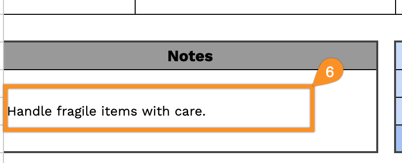 6. Use the Notes section to include any essential details or special instructions.