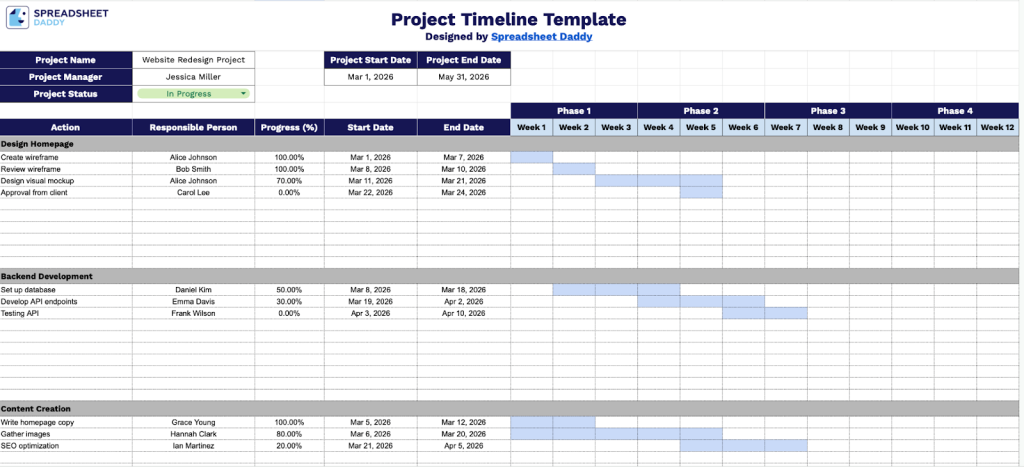 Download Spreadsheet Daddy’s Free Project Timeline Template