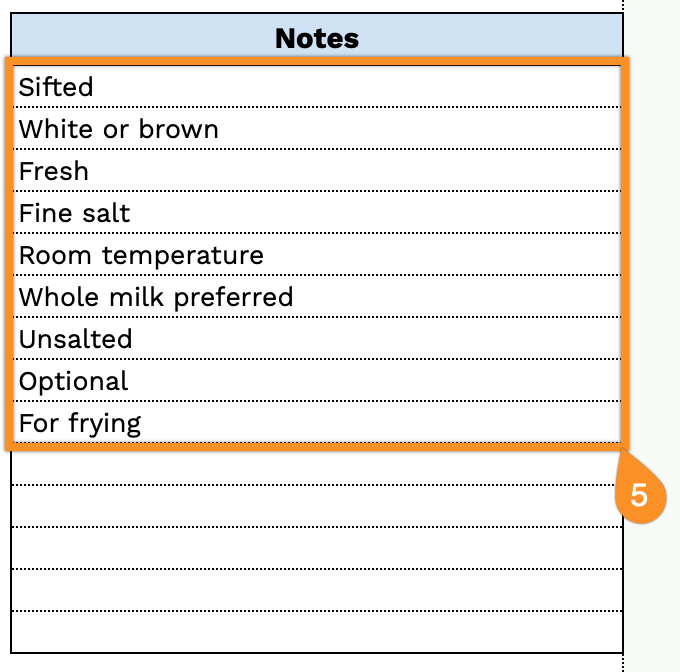 5. Use the Notes section for extra tips, cooking instructions, or special reminders.