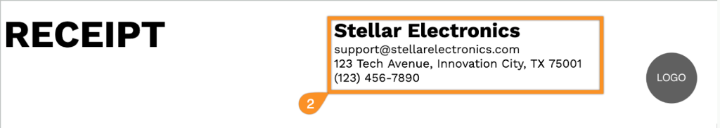 2. Enter your company information at the top, including your company name, email, address, phone number, and logo.