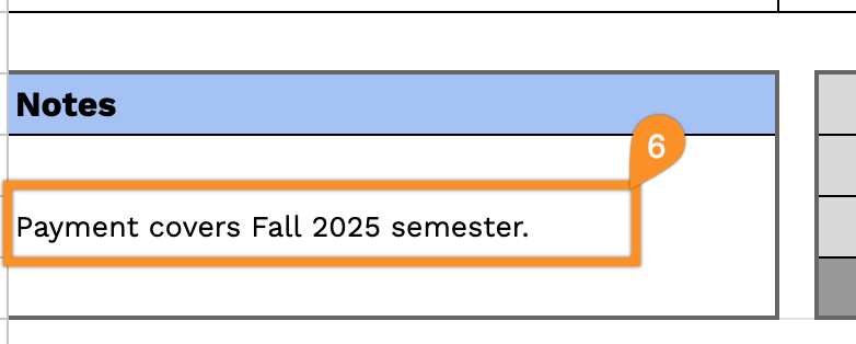 6. Use the “Notes” section to include any additional details or important information related to the payment.