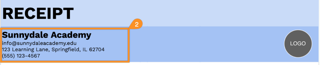 2. Enter your school’s details at the top, including the school name, email, address, phone number, and logo.
