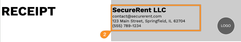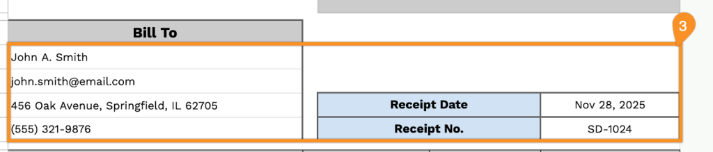 3. Fill in the tenant or customer information under “Bill To,” along with the receipt date and receipt number.