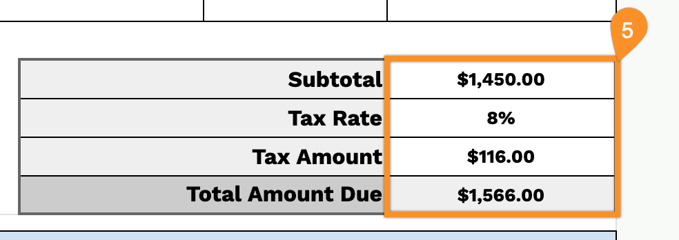 5. Specify any applicable tax rate. The template will automatically calculate the subtotal, tax amount, and total deposit due.