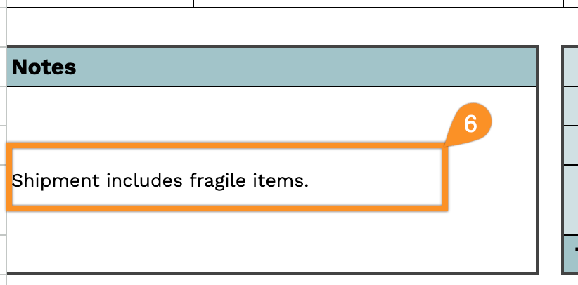 6. Use the Notes section to include any essential instructions or additional details about the shipment.