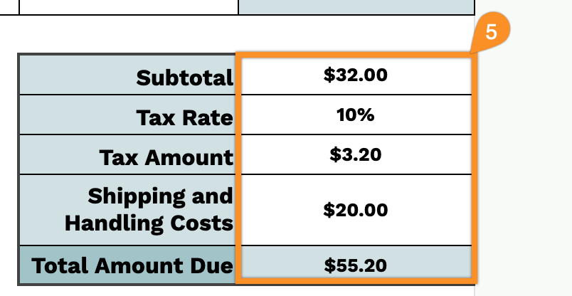 5. Add any applicable tax rates, shipping fees, and handling costs. The template will automatically calculate the subtotal, tax, and total amount due.