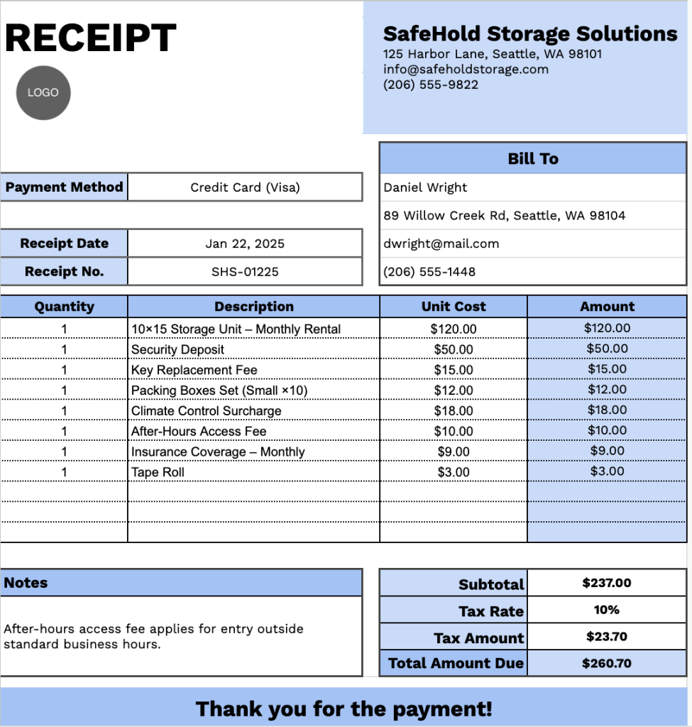 Free☝️ Storage Receipt Template (Google Sheets, Excel, Word, Google Docs, & PDF Downloads)
