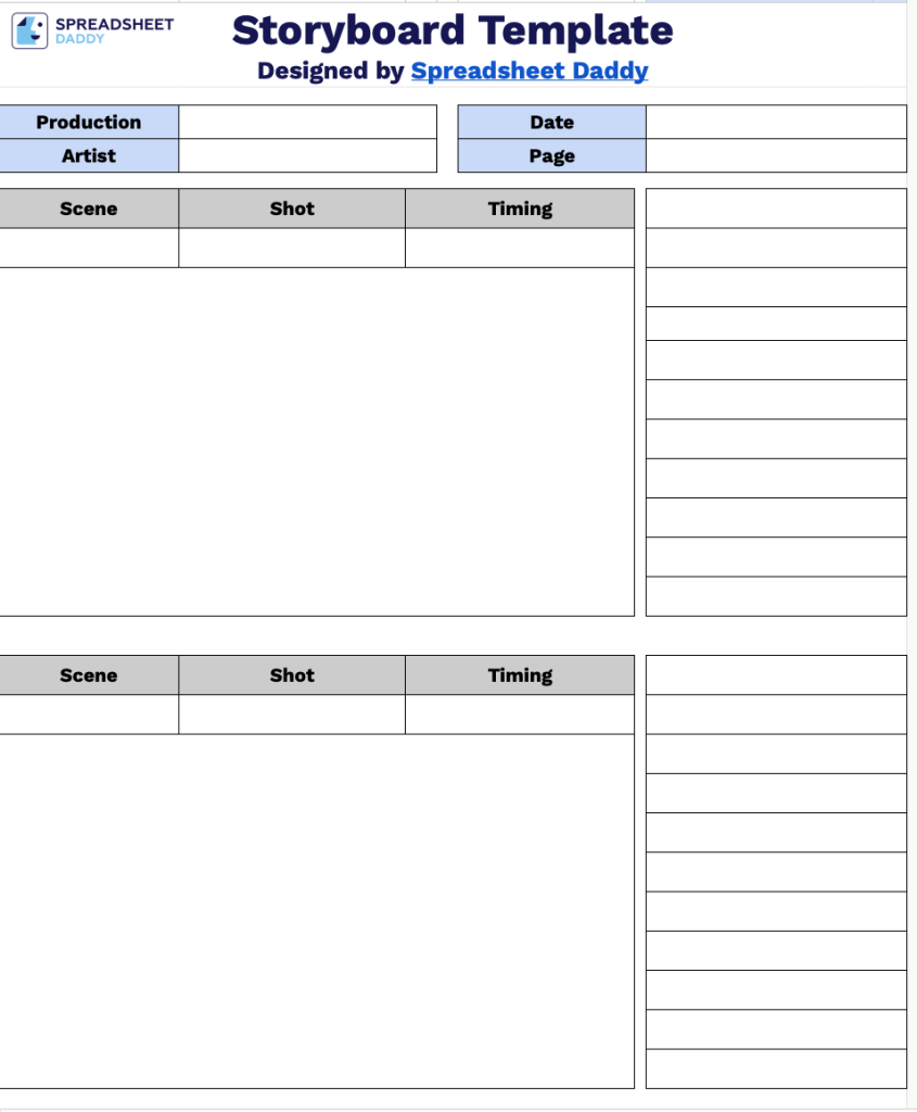 Download Spreadsheet Daddy’s Free Storyboard Template
