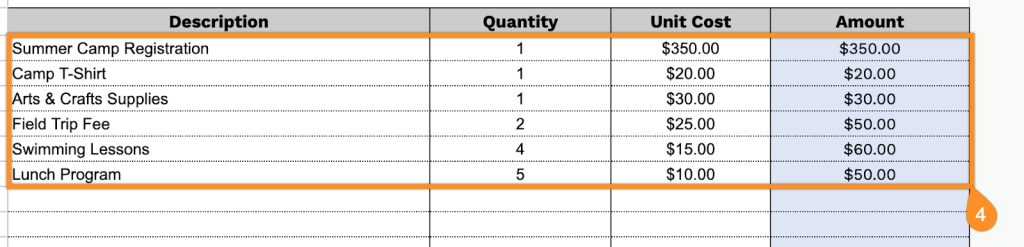You can easily customize the template by adding or removing columns to match your specific camp’s billing requirements.