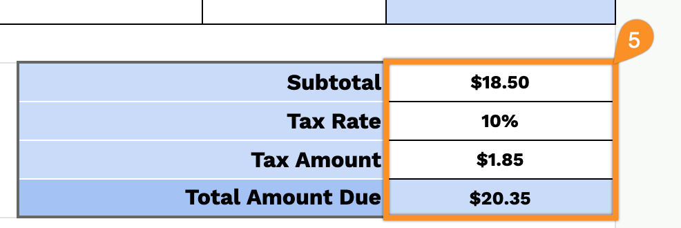 5. Apply the relevant tax rate. The subtotal, tax amount, and total amount due are calculated automatically.