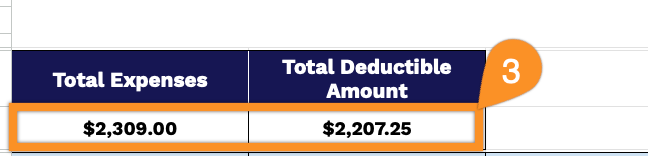 3. The Total Expenses and Total Deductible Amount at the top update automatically as you enter data in the table.