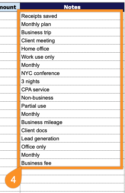 - Tax-Deductible: Indicate whether the expense qualifies as tax-deductible (Yes, Partially, or No).