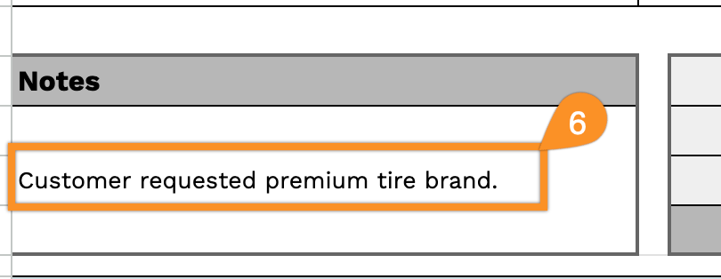 6. Use the Notes section to add any special instructions or essential details for the customer.