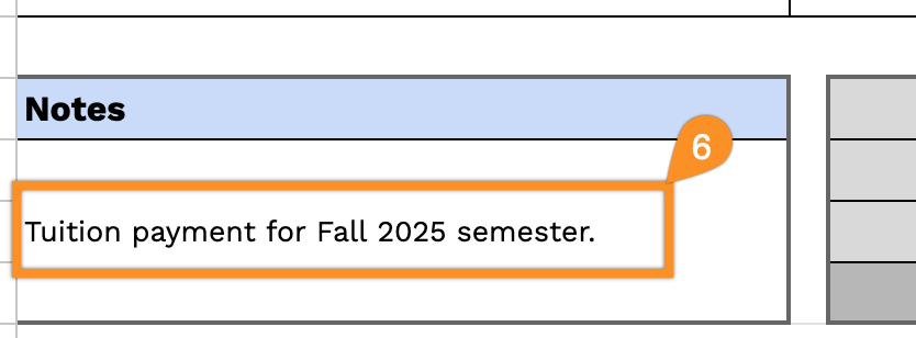 6. Use the “Notes” section for any important details, reminders, or special instructions.