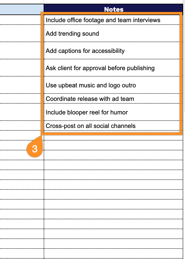 3. Use the Notes section to record any extra details or reminders related to your video projects.
