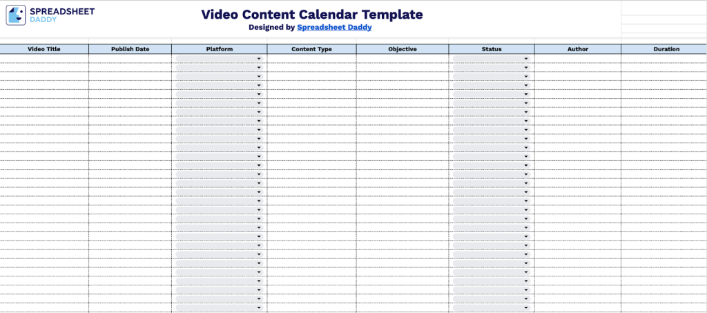 You can adjust the template by adding or removing columns based on your specific needs, whether that’s including thumbnail details, target audience, or budget information.