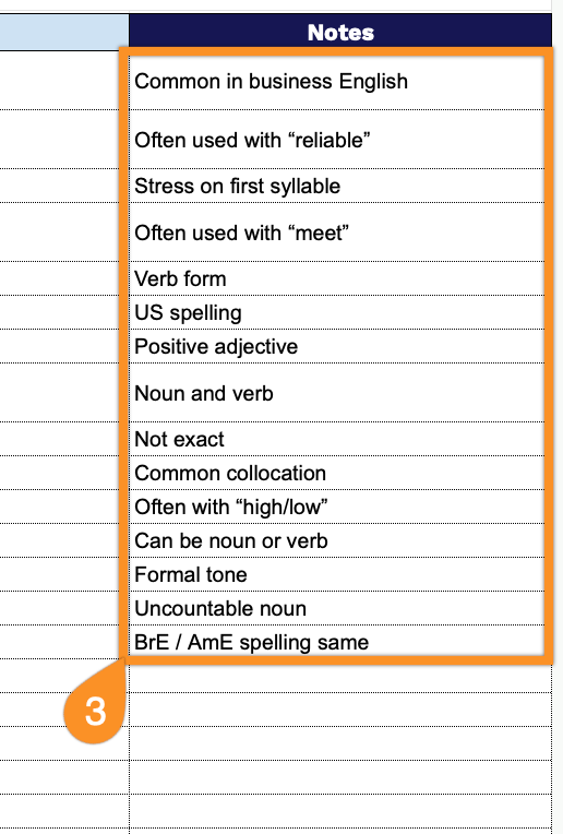 - Translation: Record the equivalent word or phrase in your target language for reference.