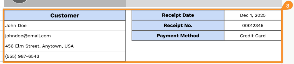 3. Fill in the customer’s name, contact information, receipt date, receipt number, and payment method.