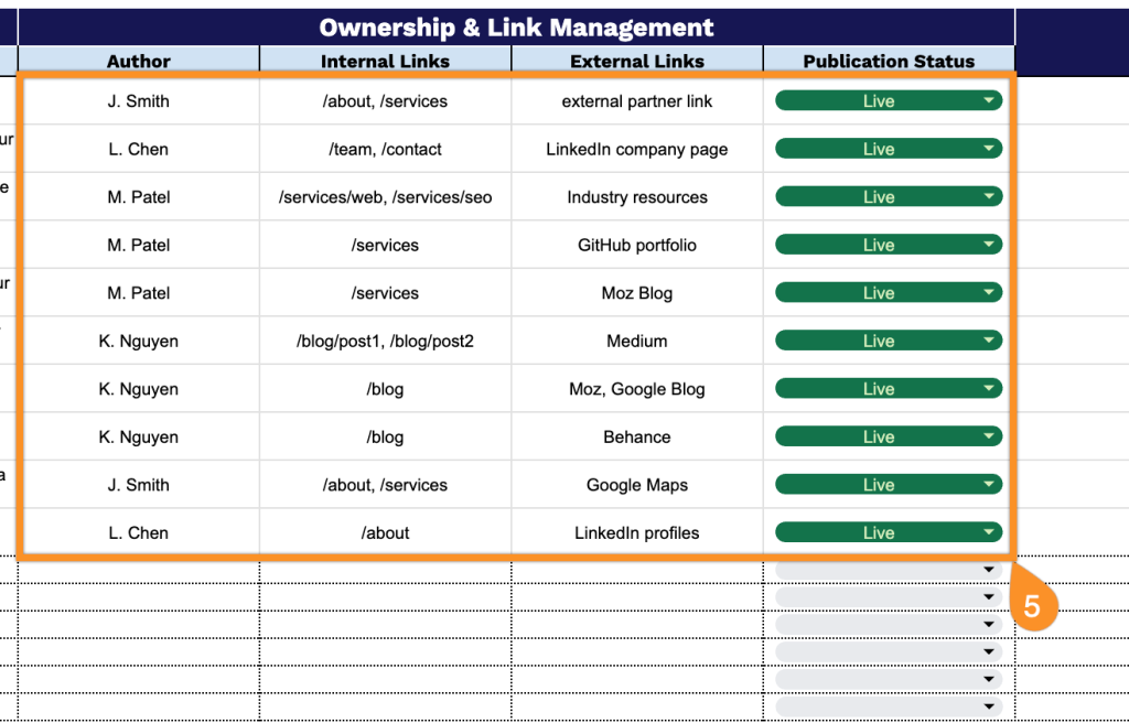 It gives you a simple way to organize your content and monitor what’s published across your site. Adjust the template by adding or removing columns to match your specific workflow and requirements.