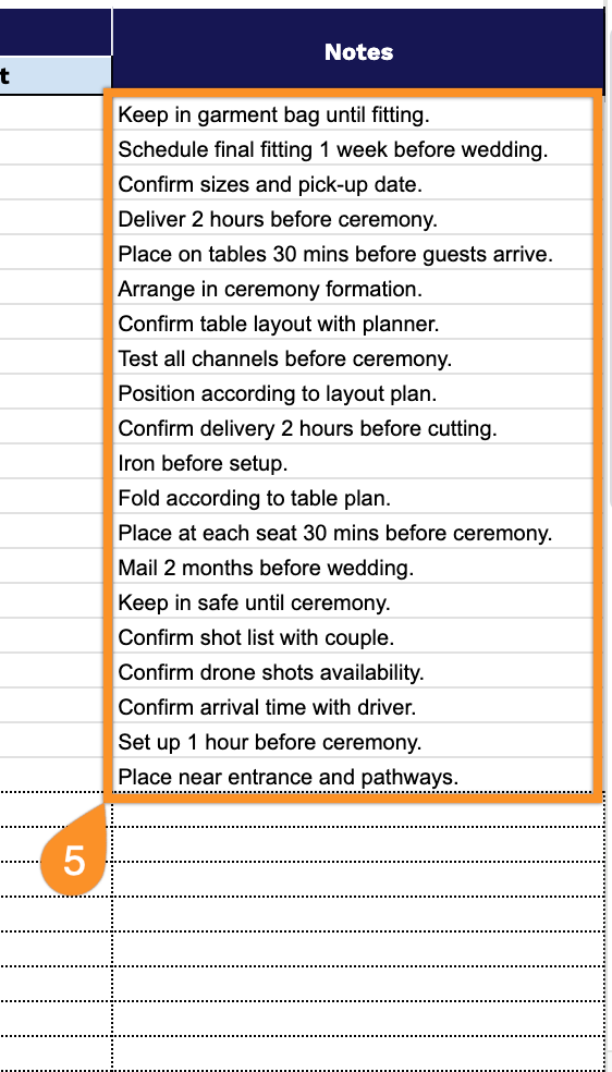 5. Record important observations and relevant details in the Notes section to enhance your wedding inventory tracking and support better event planning decisions.