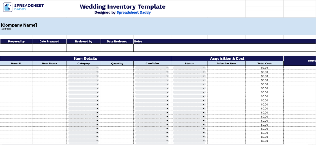 Download Spreadsheet Daddy’s Free Wedding Inventory Management Spreadsheet