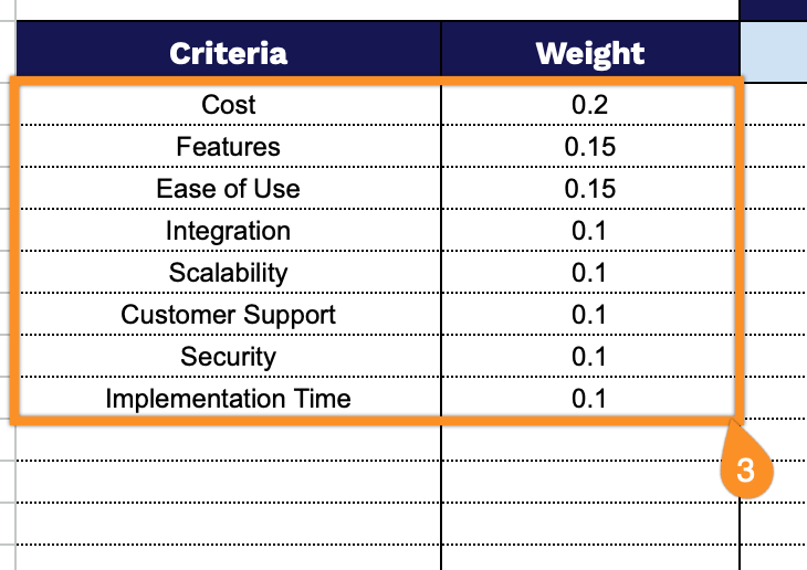 3. Set your criteria and assign a weight to each one based on importance.