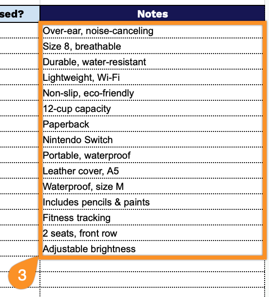3. Use the Notes section to add extra details, reminders, or essential comments for each wishlist item.