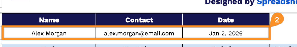- Total Time Spent: The template automatically calculates the duration between start and end times for accurate time tracking.